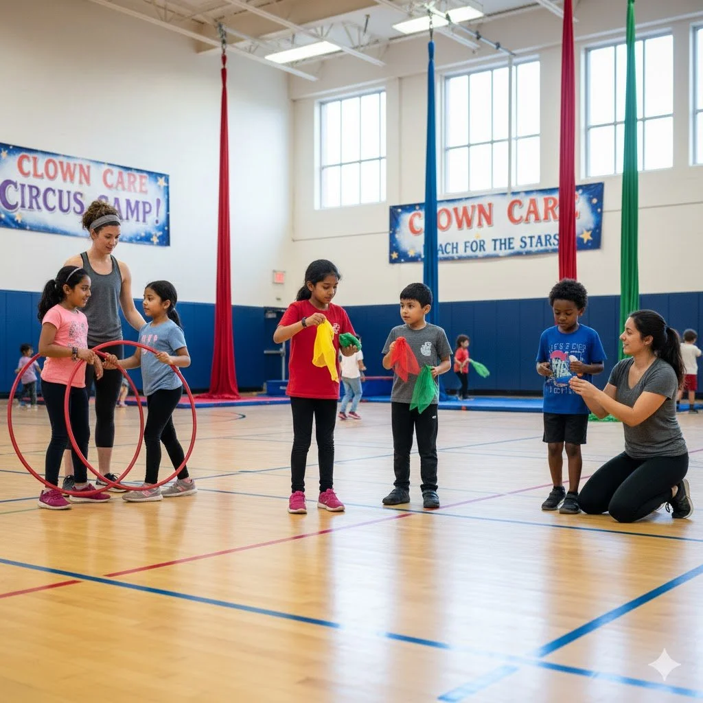 We teach age-appropriate circus skills with all grades, paying special attention to 4th and 5th grades, who help put on a show at the end of the week.